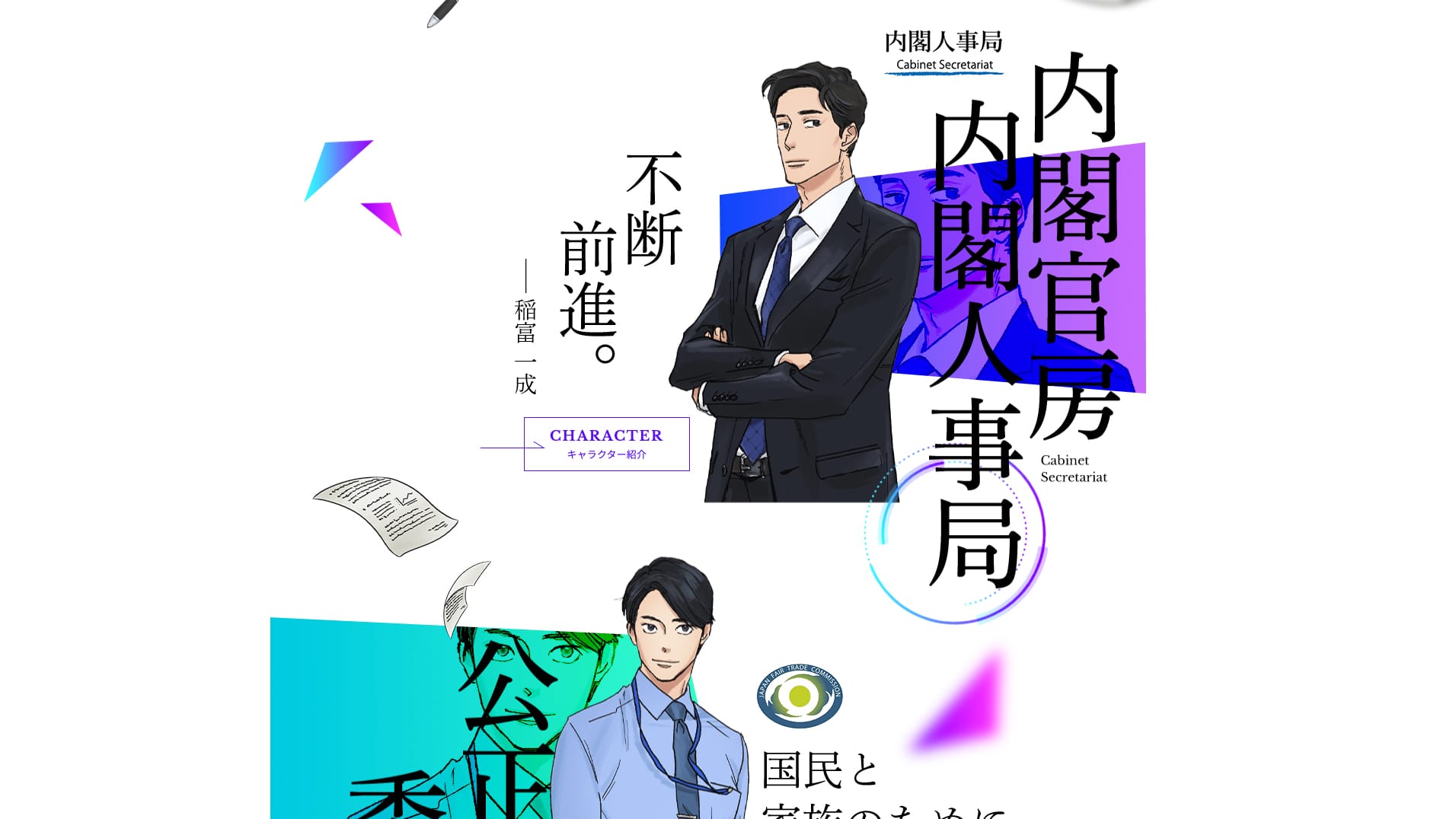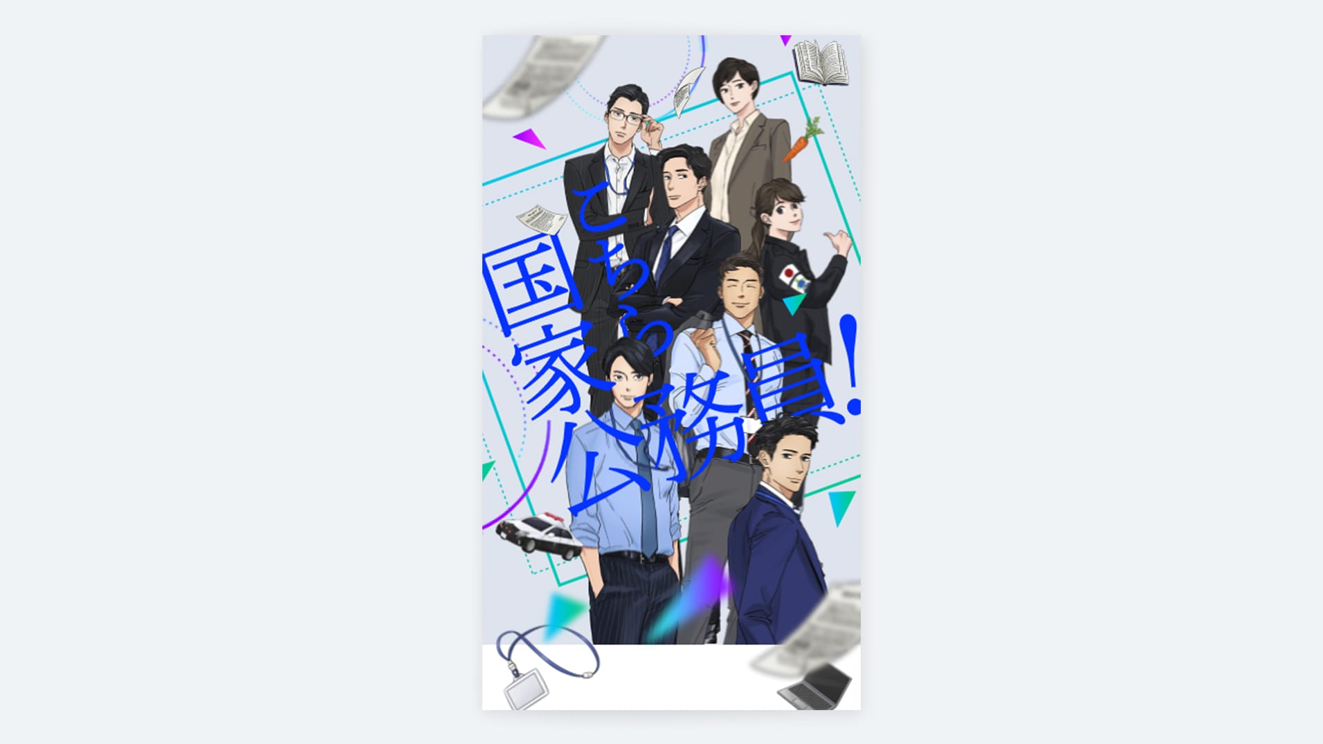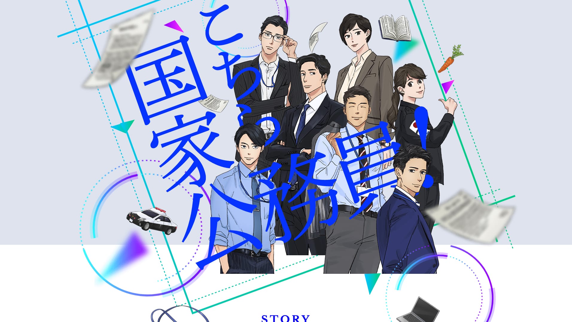 「国家公務員のアニメ化プロジェクト」(※)というテーマで話題性を作ることで、国家公務員へ興味をもってもらい採用につなげる、という狙いで制作しました。※アニメ化プロジェクト自体は存在しないが、サイトに掲載されている職員自体は本当に実在している人物